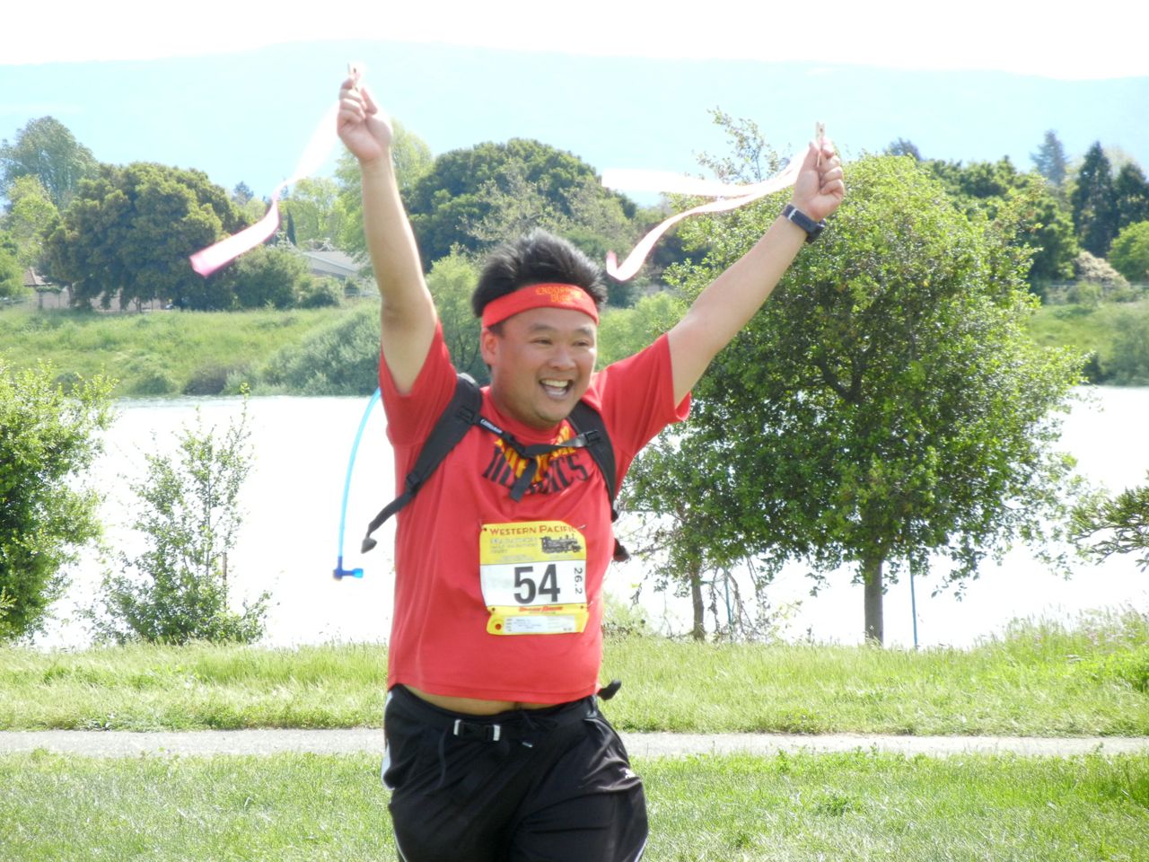 This is one of my co-volunteers who is getting in a fun run to work out the stiffness that comes from hours of standing at an aid station.
