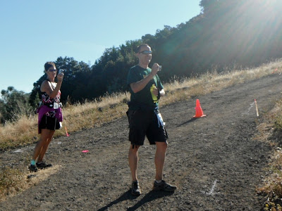 Most of the trails were fire roads that dodged in between nice shade trees and open fields. Mrs Notthat and Ultra Woof are enjoying the shade above. (They would get cranky if I pointed the camera at them while going up a hill - running for the camera is a rule, and doing that while going uphill is not fair. There were a LOT of wonderful Brazen photographers out there, but a lot of them were on uphill sections. However, I think they shaved a couple of minutes off my time by forcing me to run more than I would have if they hadn't been there.)
